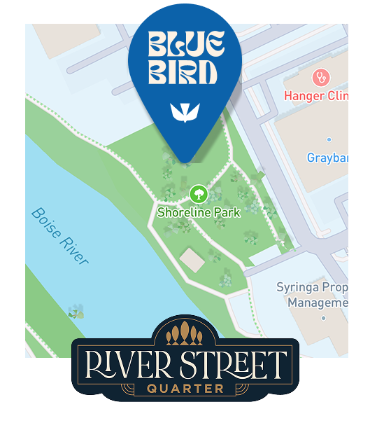 Boise's newest outdoor social hub — a boutique riverside venue built for summer. Live music from local to national touring acts, a curated food hall open ~6 days a week for lunch and dinner service, and an intentionally designed gathering space on the Greenbelt. Looking for a fun and creative way to have a great day? Just show up and trust the Bluebird!